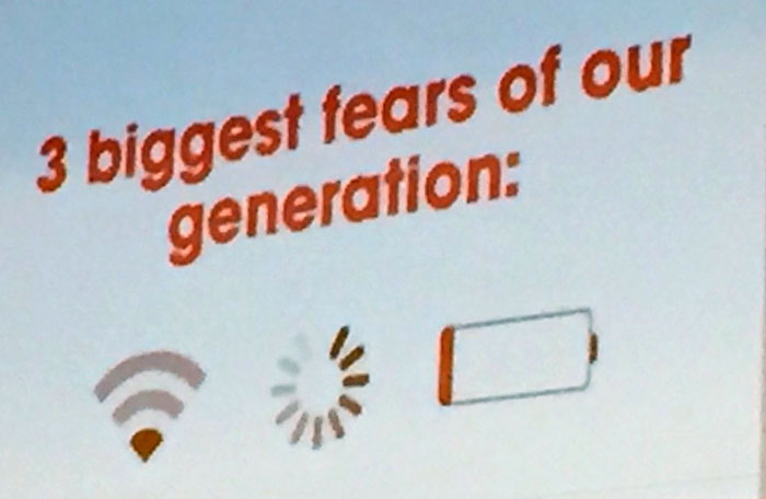 Alla talarna var överens om att förändringarna är omvälvande och att det går snabbt så det gäller att ha kunskap för att kunna navigera i det nya landskapet som växer fram. Ett landskap där våra tre största rädslor är – att batteriet i vårt smarttelefon (surfplatta/bärbara dator) ska ta slut, en webbsida/app/dokument som tar lång tid att ladda eller en sviktande uppkoppling till nätet.